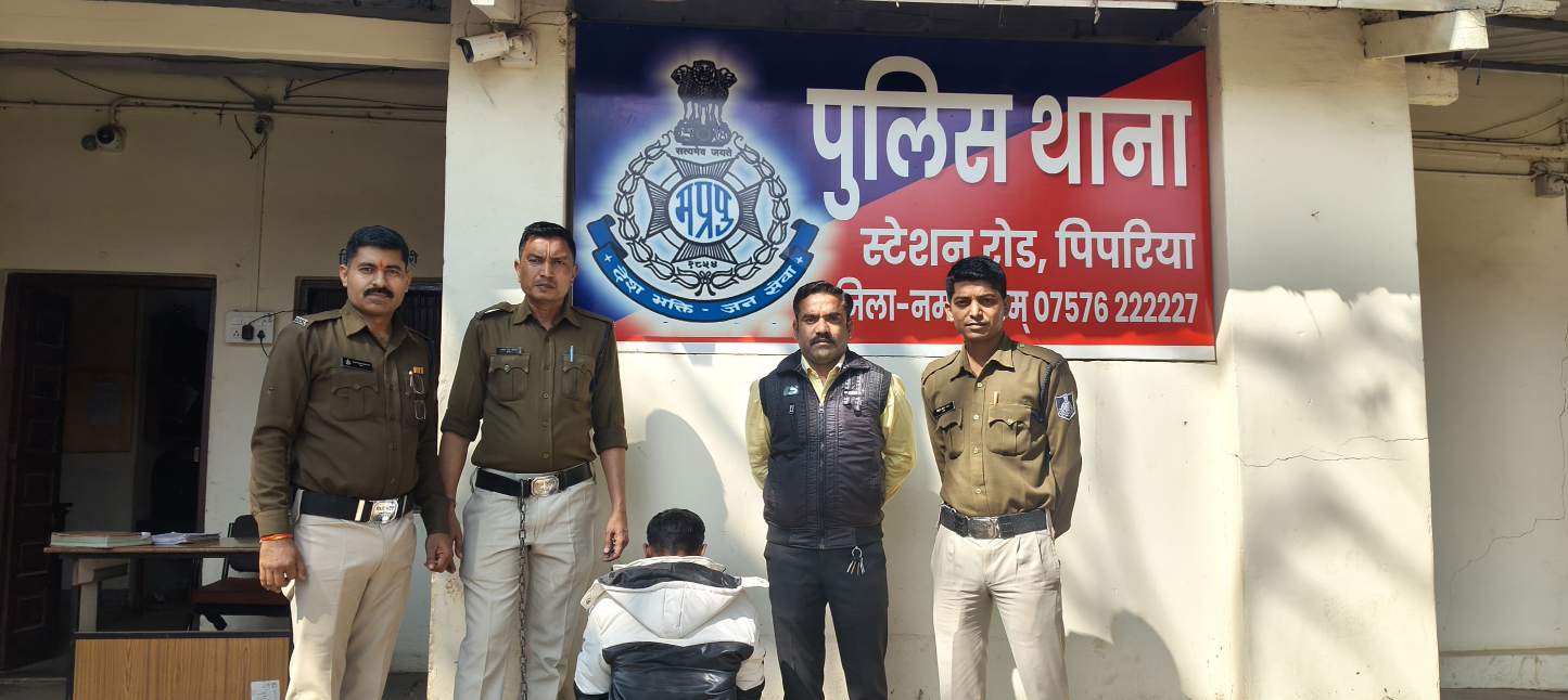 पिपरिया _ जिला पुलिस अधीक्षक एवं अतिरिक्त जिला पुलिस अधीक्षक नर्मदापुरम के निर्देश पर अनुविभागीय अधिकारी पुलिस पिपरिया मोहित कुमार यादव द्वारा थाना प्रभारी स्टेशन रोड़ पिपरिया निरीक्षक आदित्य सेन के नेतृत्व में थाना स्टेशन रोड़ पिपरिया में टीम गठित कर अवैध स्मैक पाउडर के सह आरोपी राज साहू को गिरफ्तार करने में सफलता हासिल की, आरोपी अपराध क्र. 11/26 धारा 8, 21, 29 NDPS में फरार चल रहा आरोपी राज साहू पिता मानकलाल साह उम्र 25 साल निवासी हथवास थाना पिपरिया जिला नर्मदापुरम को दिनांक 15-02-2026 को ग्राम हथवास को अभिरक्षा में लेकर पूछताछ कर गिरफ्तार किया गया एवं गिरफ्तार आरोपी को विशेष न्यायालय जिला नर्मदापुरम पेश किया ।