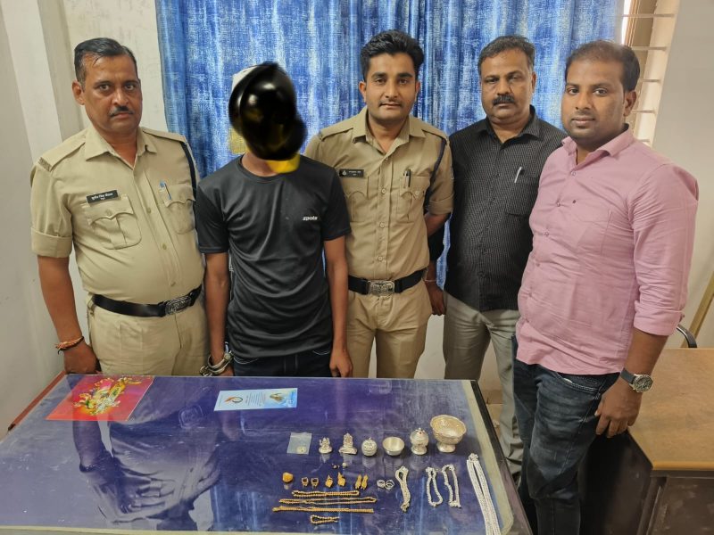 कोटवारी थाना प्रभारी निरीक्षक कंचन सिंह ठाकुर ने प्रेसनोट के माध्यम से बताया कि 3 अप्रैल को फरियादी रामगोपाल पाण्डे पिता शिवकुमार पाण्डे निवासी जुमेराती नर्मदापुरम ने थाना कोतवाली में उपस्थित होकर रिपोर्ट कि अपने परिवार के साथ गाँव गया था उसी दौरान किसी अज्ञात व्यक्ति द्वारा फरियादी के घर मे घुसकर गोदरेज का ताला तोड कर सोने चाँदी के आभूषण एवं नगदी 2,500/- रुपए चोरी कर ले गया था, फरियादी की रिपोर्ट पर थाना कोतवाली नर्मदापुरम मे अपराध क्रमांक 336/26 धारा 331(4),305(a) भारतीय न्याय संहिता का अपराध पंजीबद्ध कर विवेचना मे लिया गया था, प्रकरण मे विवेचना के दौरान फरियादी को जेवरात की सूची मय बिल के लाने हेतु पाबंद किया गया था जिसके अनुसार अज्ञात आरोपी द्वारा करीबन 5 लाख रुपए के आभूषण चोरी कर ले गया था, प्रकरण मे उक्त घटना को थाना कोतवाली नर्मदापुरम द्वारा चुनौती के रूप मे लिया जाकर त्वरित पुलिस टीम द्वारा घटनास्थल के आसपास के सीसीटीवी केमरे खंगाले गए एवं तकनीकी साक्ष्यों से ज्ञात हुआ कि उक्त संदिग्ध व्यक्ति खंडवा मे है, सूचना पर पुलिस टीम को रवाना किया गया एवं संदिग्ध व्यक्ति की तलाश करते हुये पुलिस टीम थाना मोघट जिला खंडवा के ग्राम सिंहाड़ा पहुंची, जहां ज्ञात हुआ कि उक्त संदिग्ध व्यक्ति ग्राम सिंहाड़ा का रहने वाला है जिसका नाम शेख शादाब पिता शेख नौशाद उम्र निवासी सिंहाड़ा का है, पुलिस टीम द्वारा शेख शादाब को अभिरक्षा मे लिया जाकर पूछताछ की गई, जिस पर शेख शादाब द्वारा घटना करना स्वीकार किया एवं बताया कि पिछले कुछ दिनो से वह नर्मदापुरम मे रहकर कबाड़ा बीनने के काम कर रहा था एवं सूने मकान की रैकी कर उक्त घटना को अंजाम दिया गया है ।