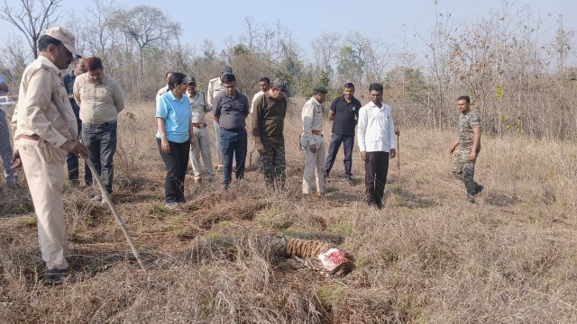 नर्मदापुरम- जिले के सतपुड़ा टाइगर रिजर्व वन परिक्षेत्र मटकुली के बीट नयाखेड़ा कक्ष क्रमांक 460 में दिनांक 04.04.2026 की सायंकाल दो बाघों के दहाड़ने की तेज आवाज सुनाई दी जिस पर वनरक्षक नयाखेड़ा परिक्षेत्र सहायक एवं अन्य उपस्थित स्टाफ द्वारा उस क्षेत्र के आसपास गश्ती की गई रात्रि में वहां से मौका स्थल के पास जाकर देखा गया तो एक शावक मृत पाया गया, रात्रि होने के कारण मौका स्थल की निगरानी की गई तथा दूसरे दिन मौका स्थल का निरीक्षण करने पर बाघों के आपसी संघर्ष के स्पष्ट साक्ष्य प्राप्त हुए तथा एक नर बाघ शावक का शव पाया गया, घटनास्थल के आसपास सूक्ष्म निरीक्षण करने पर अन्य बाघों की उपस्थिति के भी साक्ष्य प्राप्त हुए ।
