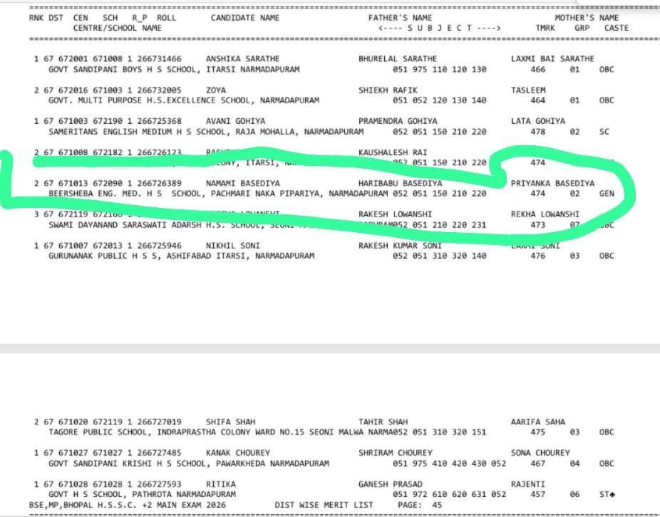 पिपरिया – पिपरिया के बेरसेवा इंग्लिश मीडियम हायर सेकेंडरी स्कूल की छात्रा नमामि बसेड़िया पिता हरीबाबू बसेड़िया ने मेथ साइंस में 95% लाकर जिले भर में दूसरा स्थान प्राप्त किया है, 500 में से 474 अंक प्राप्त कर यह उपलब्धि हासिल की है, नमामि ने स्कूल के साथ ही पिपरिया नगर का नाम रौशन किया है ।