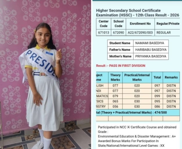 आपको बता दे हरीबाबू बसेड़िया की पुत्री नमामि हमेशा ही पढ़ाई में अव्वल रही है, इस उपलब्धि पर रिश्तेदारों एवं शुभचिंतकों ने नमामि को बधाई शुभकामनाए दी ।