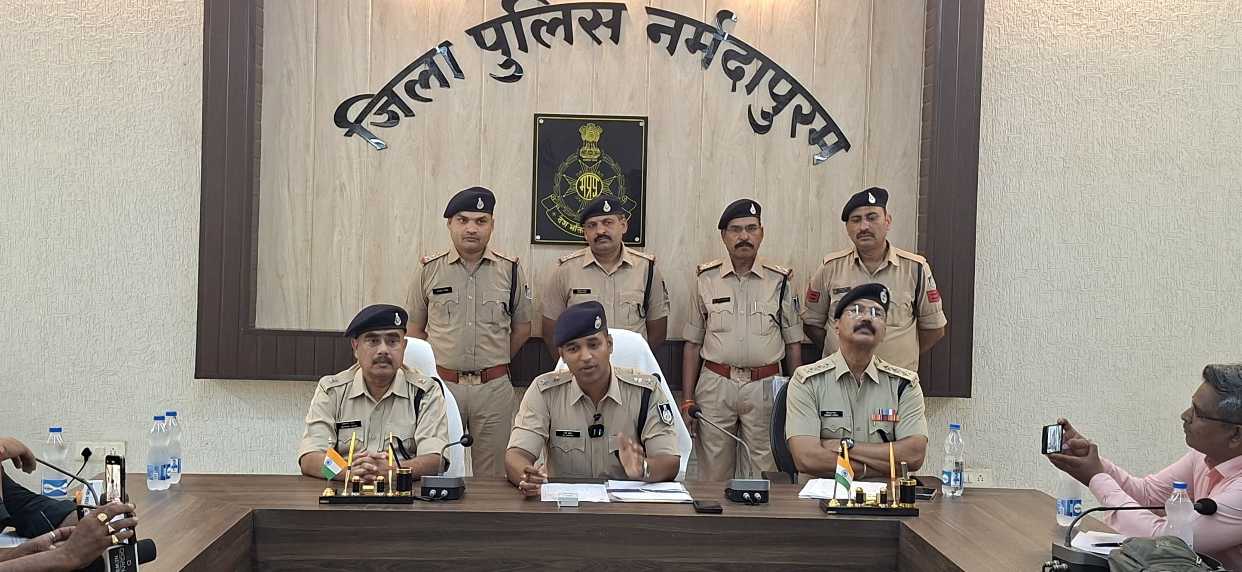 प्रेसवार्ता के दौरान जिला पुलिस अधीक्षक नर्मदापुरम साई कृष्णा ने बताया कि दिनांक 19 अप्रैल 2026 को थाना शिवपुर क्षेत्र के अंतर्गत ग्राम नाहरकोला निवासी सीताराम कीर के यहां विवाह कार्यक्रम में आए जयनारायण कीर एवं अन्य लोगों से पुरानी रंजिश को लेकर गांव में ही रहने वाले अमर सिंह एवं उसके बेटे लोकेश कीर के मध्य विवाद होने पर आरोपी अमर सिंह कीर द्वारा डंडे एवं लोकेश कीर द्वारा धारदार हथियार (चाकू) से दौलातराम कीर, जयनारायन कीर, हरीनारायण कीर एवं क्षमा बाई कीर पर हमला करते हुए सभी को गंभीर रुप से घायल कर दिया गया जिसमें सभी घायलों को तत्काल प्राथमिक उपचार हेतु शासकीय चिकित्सालय सिवनी मालवा ले जाने पर दौलतराम कीर को गंभीर चोट लगने के कारण डॉक्टर द्वारा मृत घोषित कर दिया गया, उक्त घटनाक्रम के आधार पर थाना शिवपुर में अपराध क्र. 102/2026 धारा 296(06), 118(1), 100(1), 3(5) बीएनएस पंजीबद्ध किया गया, जब पुलिस की टीम आरोपी अमर सिंह एवं लोकेश कीर को पकडने पहुंची तो आरोपी लोकेश कीर द्वारा शिवपुर थाने में पदस्थ आरक्षक ओमप्रकाश जाट पर धारदार हथियार (चाकू) से हमला कर घायल कर दिया एवं घटनास्थल से भाग निकला गंभीर रूप से घायल आरक्षक को उपचार हेतु तत्काल शासकीय चिकित्सालय सिवनी मालवा रिफर करते हुए थाना शिवपुर में आरोपी लोकेश कीर के विरुद्ध एक और अपराध क्र. 103/2026 धारा 109(1),132,121 बीएनएस पंजीबद्ध किया गया । प्रकरण गंभीर होने से थाना प्रभारी शिवपुर द्वारा पुलिस अधीक्षक नर्मदापुरम को घटना से अवगत कराकर आवश्यक दिशा निर्देश प्राप्त किये गए ।